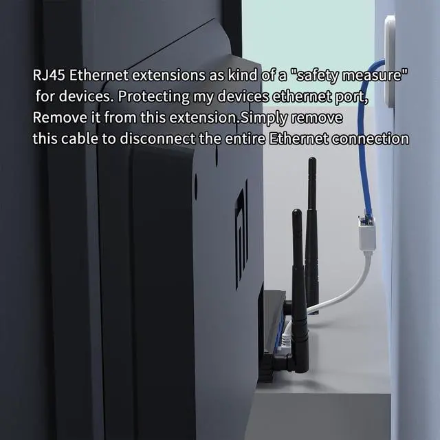 RJ45 Ethernet extensions as kind of a "safety measure" for devices. Protecting my devices ethernet port, Remove it from this extension.Simply remove this cable to disconnect the entire Ethernet connection