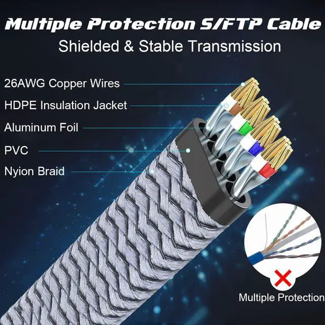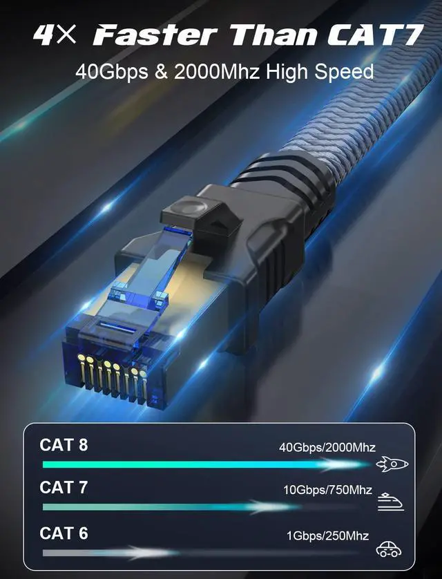 - 4× Faster than Cat 7 Ethernet Cable