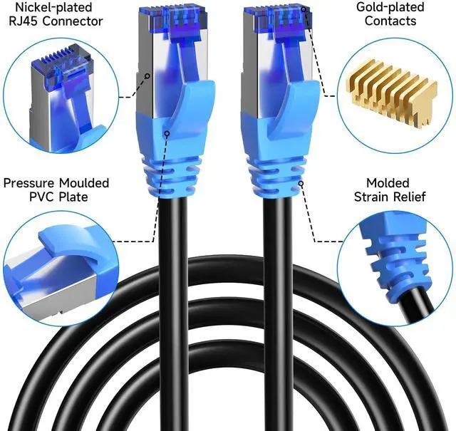 - Features 8P8C gold-plated contacts paired with nickel-plated RJ45 jacks for high performance and aesthetic appeal