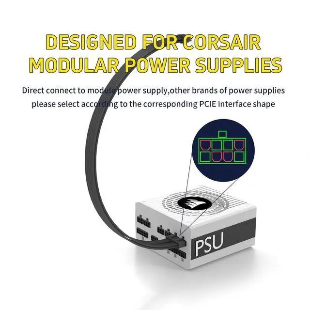 • Design for Corsair PSUThe Corsair 12vhpwr Design for Corsair PSU,connects directly to the power supply with 2 x 8pin pcie ports,no need to connect to the extension cable,fits Corsair Type-4 PSUs,70cm/27.5in length is long enough to fit in most chassis