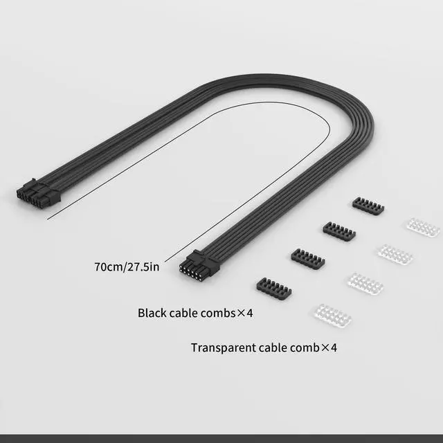 • Two Sets of Cable CombsIncludes two sets of black and transparent cable combs,you can choose the appropriate colour according to the PC appearance of the need to choose,each colour four cable combs,the comb spacing tightly,to keep the entire cable mod in any position in the chassis are neat and orderly