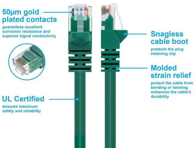High quality Category 6 (CAT6) patch cables are the solution to your internetworking needs. With a blazing speed of up to 550MHz you can connect to your LAN/WAN segments and networking gear at maximum speed. Also with its superior connector you get a cable that is built for speed and endurance. Monoprice Cat5e and Cat6 cables are made of 24 AWG pure bare copper wire as opposed to copper clad aluminum (CCA) wire and are therefore fully compliant with UL Code 444 and National Electrical Code TIA-568-C. 2 fire and safety standards which require pure bare copper wire in Cat5e and Cat6 communications cables. .