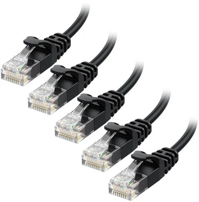 10Gbps 5-Pack Snagless Cat 6 Ethernet Cable - 10ft, Slim Profile Cat 6 Cable, Cat6 Cord, Thin Ethernet Cord, Black