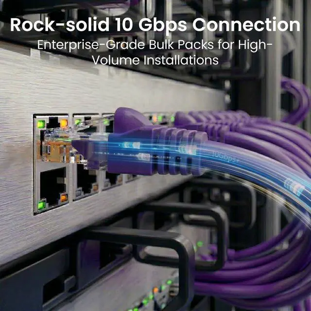 Cat 6 Ethernet Cable (10-Pack 2 Feet) Cat6 Network Patch, 10Gbps, RJ45, Snagless Cord, Gold-Plated Connectors, Internet for PC, TV, Tablet, Router, Printer, Servers, IT Data Center - Purple