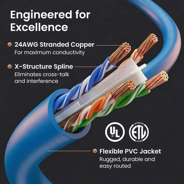 • High-Performance Cat 6 Ethernet Cable Pack GEARit's 1-pack of 30 ft Cat6 ethernet patch cables features 24 AWG UTP stranded conductors twisted in an X-structure spline to minimize crosstalk and deliver full 10 Gbps bandwidth - future-proof network cables for home, office, data-center, and server use.