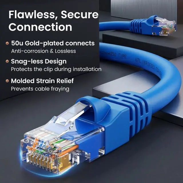 • Durable, Gold-Plated RJ45 Connectors Each patch cable is terminated with corrosion-resistant, 50 _m gold-plated contacts and a snagless strain-relief boot to protect against wear and tear - ideal for frequent plug/unplug cycles and tight equipment racks.