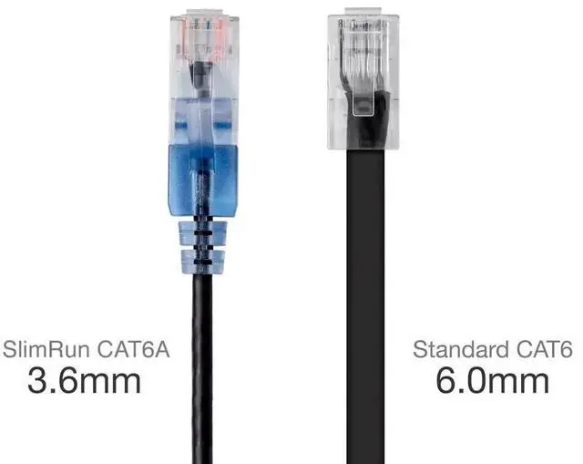 Monoprice SlimRun Cat6A is a small cable with big performance. With a cable diameter of almost half a standard Cat6A cable, SlimRun Cat6A is easier to route and saves valuable space in high density environments, such as data centers and telecommunications rooms. With SlimRun Cat6A, you can fit more cables in the same space, saving you the time and cost of expanding or replacing cable pathways.