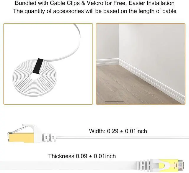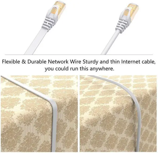 Unique flat design Ethernet Cord design helps improve the look of your home or office. Flat network LAN cables are super flexible and can be run under the carpet or bent through corners or into carpet.