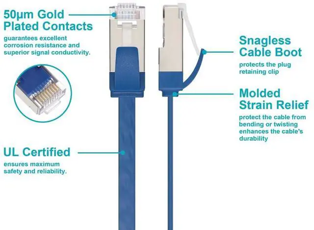- Durable molded strain-relief boot protects RJ45 connectors from bending and wear during frequent use