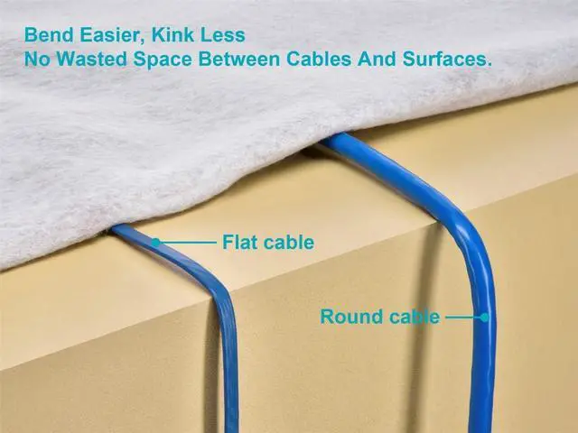 - Flat cable profile reduces clutter and easily fits under carpets, along baseboards, or behind equipment