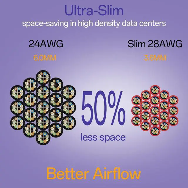 Cat 6A slim ethernet cable is the solution to reduce congestion in high-density CAT6a network environments, such as data centers telecommunication and server rooms.