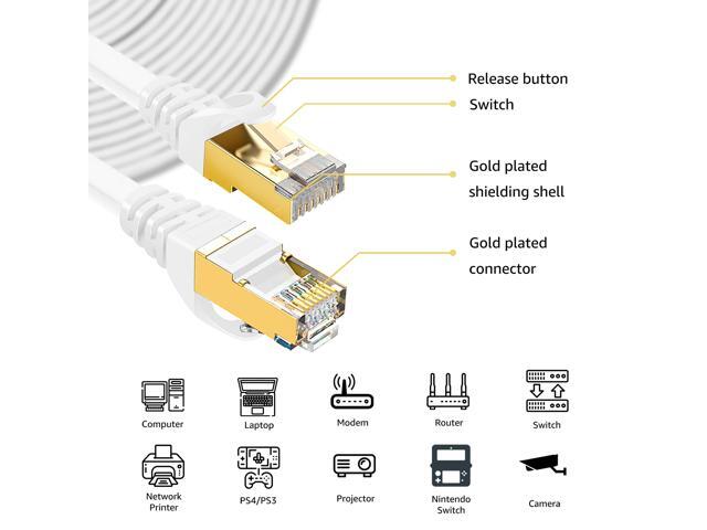 - Premium Materials: Made of 4 Pairs 30AWG pure & thick shielded twisted pair (STP) of copper wires with RJ45 connectors on each end. RJ45 connectors with gold plating ensure universal connectivity. Aluminum foil provide great resistance to crosstalk, noise, and interference.
