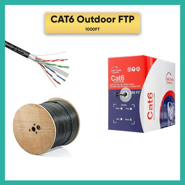 1000FT CAT6 Cable Outdoor 1000FT UTP FTP Ethernet 23 AWG Direct Burial Bulk unshielded UTP