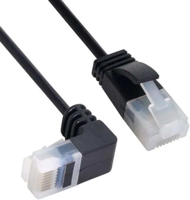 Down Angled 8P8C STP Cat 5e Lan Ethernet Network Patch Cord 90 Degree to Straight Cable 50cm Straight to Angled 90 Degree 8p8c plug Length: 50cm 8p8c RJ45 male to male connector with Shield Work for any ethernet.