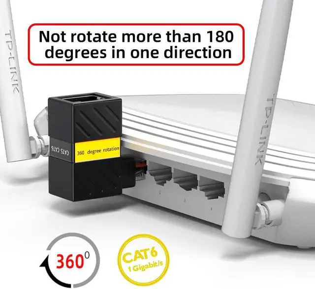 CAT6 UTP Male to Female 360 Degree Angled Rotating Adapter RJ45 8P8C 1000Mbps for Lan Ethernet Network.
