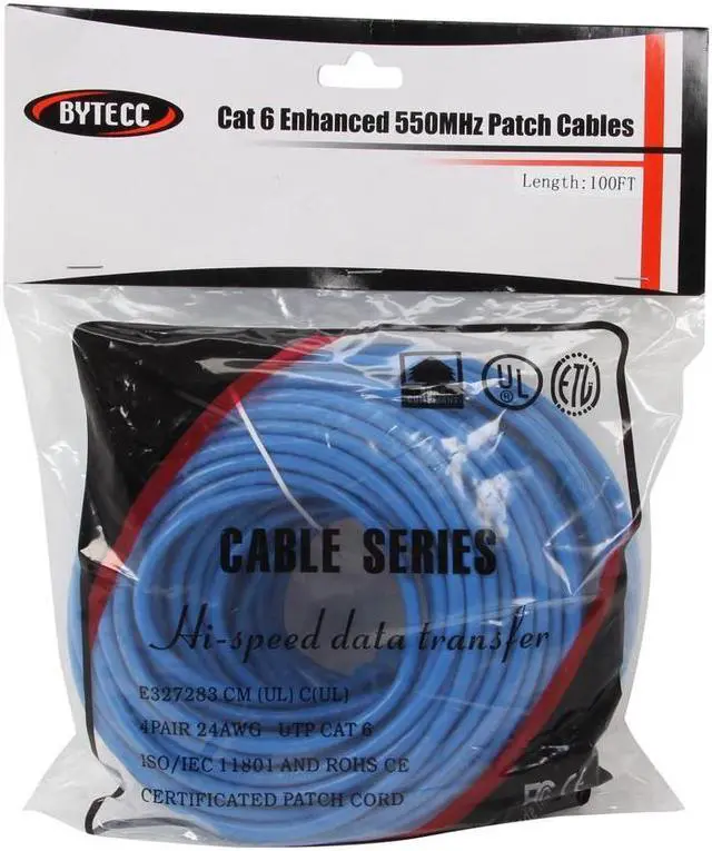 The BYTECC Cat 6 Patch Cable* is ideal for use in high-speed networking situations. It operates at up to 550MHz and supports Gigabits 10/100/1000. It consists of four unshielded twisted pairs of 24 AWG wire. Available in various colors and sizes, the BYTECC Cat 6 Patch Cable enables you to color code your network cable runs as needed*.
