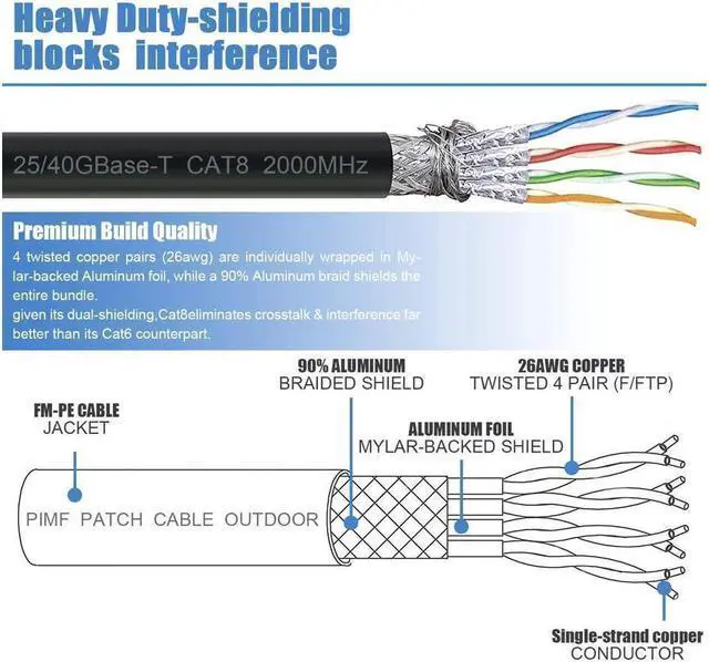 RJ45 Cable, Ethernet Network Cable 3 ft. CAT-8