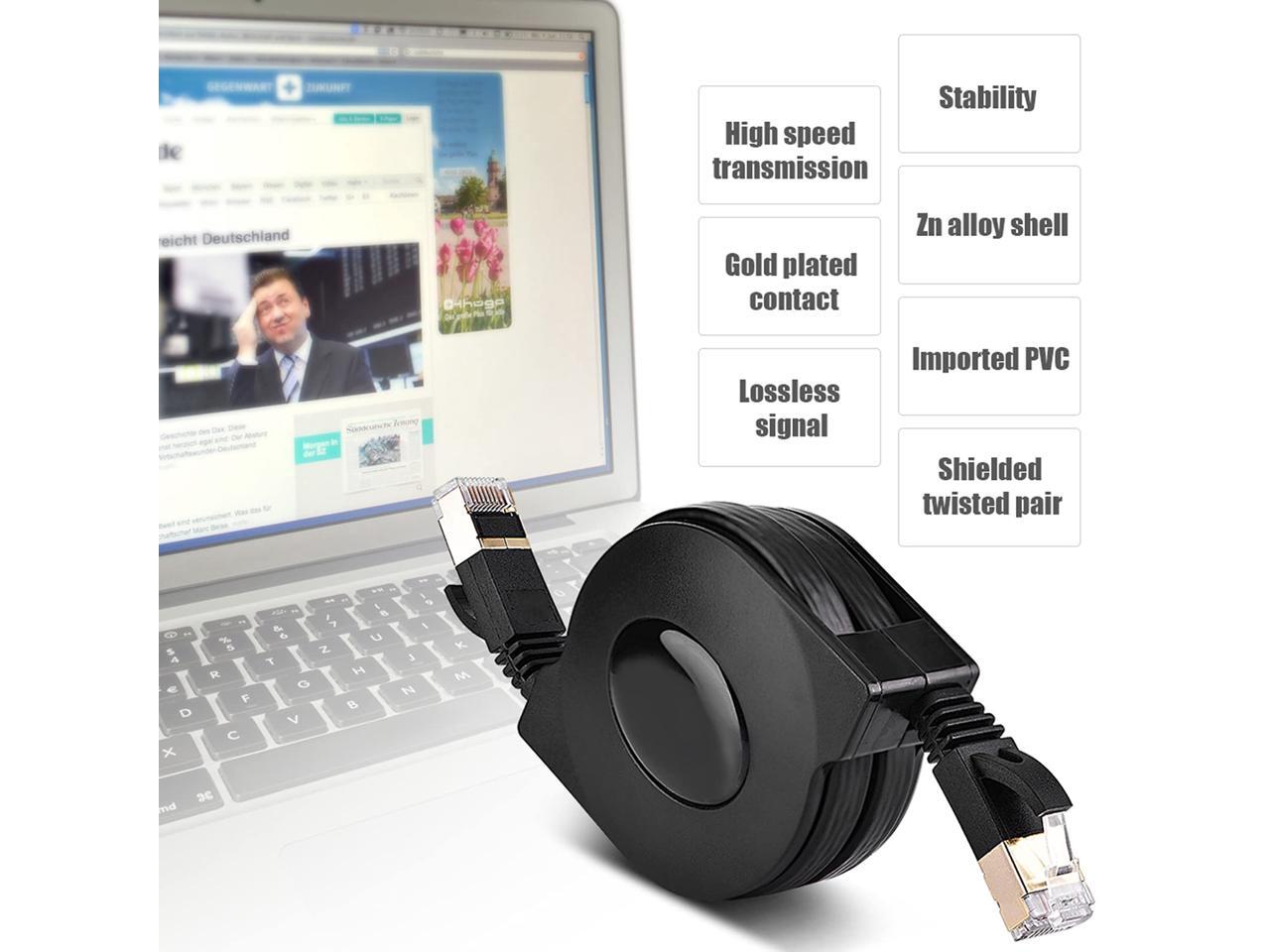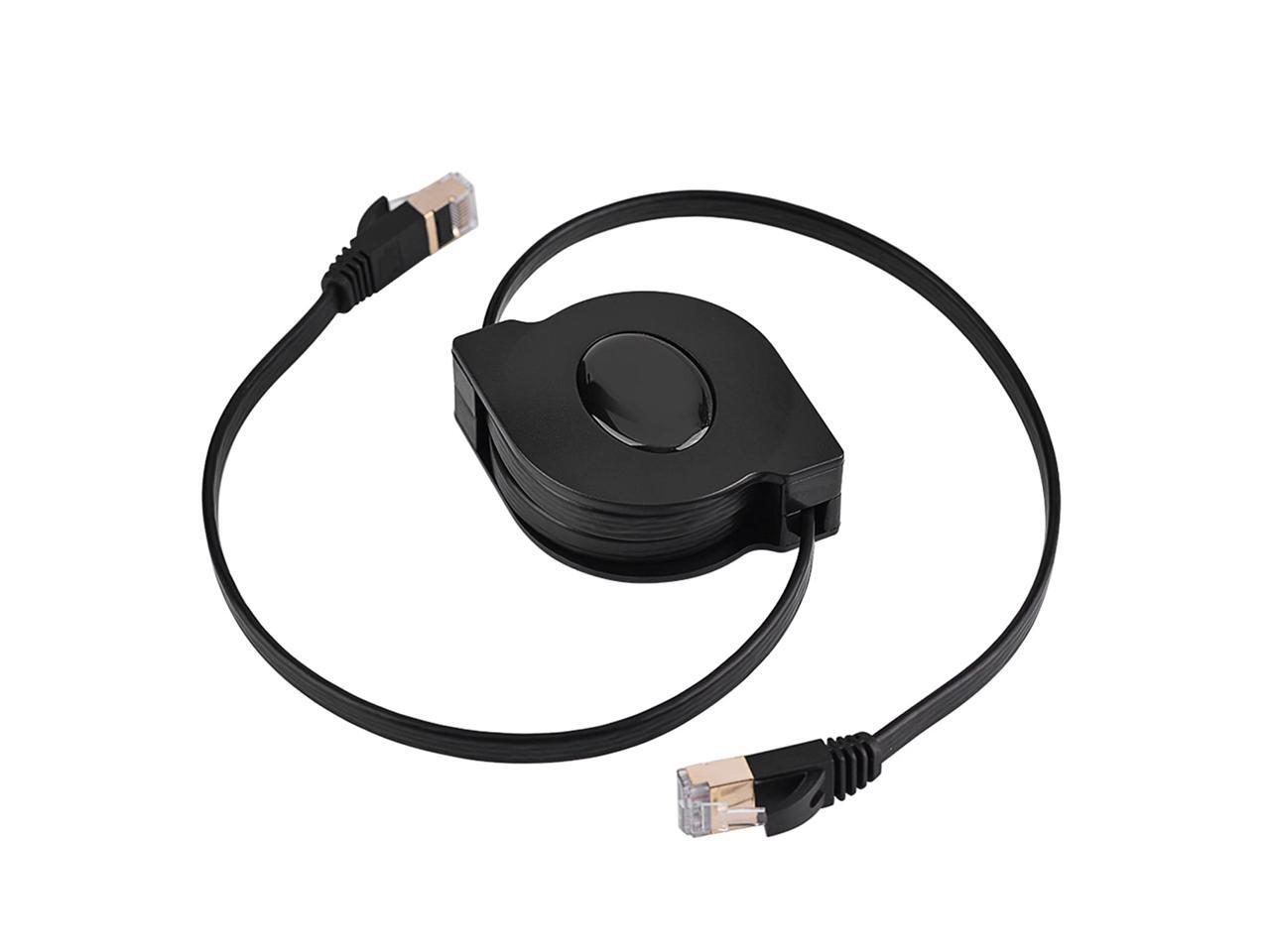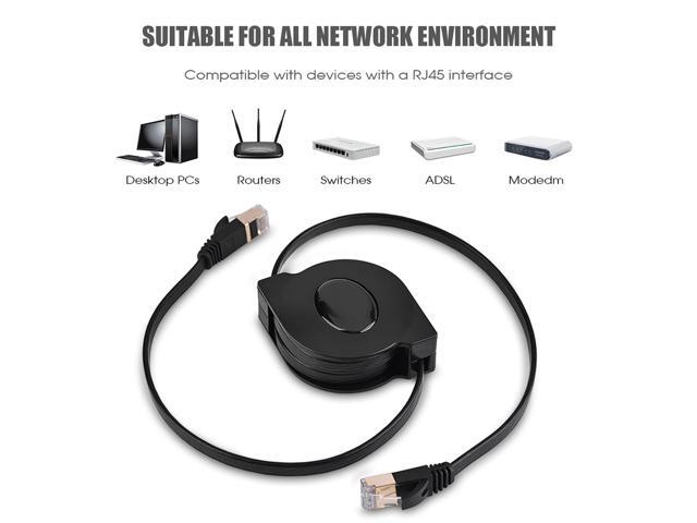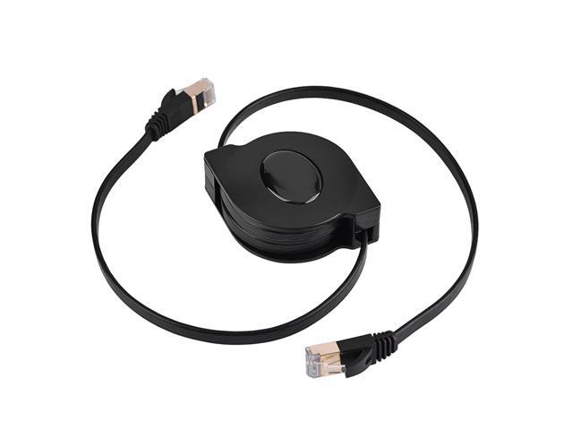 RJ45 LAN Cable, Black Retractable LAN Network Cable, Flat Ethernet Cord for LAN Network