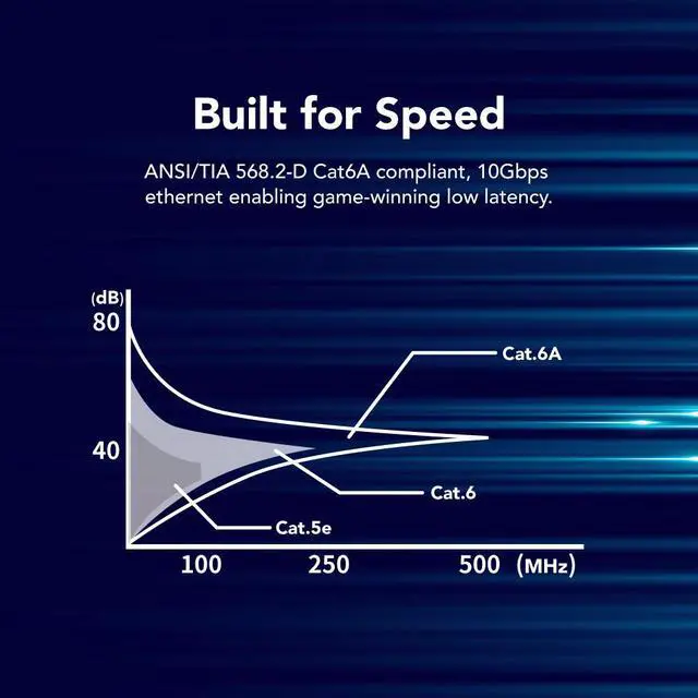 ANSI/TIA 568.2-D Cat6A compliant ,10Gbps ethernet enabling game-winning low latency.