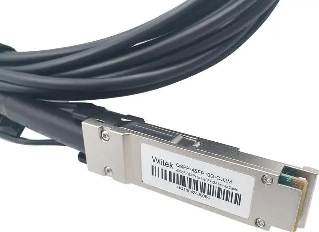 Product Name: Wiitek for Cisco Compatible 40GbE QSFP+ to 4 SFP+ Breakout Twinax Cable, QSFP-4SFP10G-CU2M Direct Attach Copper Cable, Pull-to-Release Latch 30AWG 2M, Black