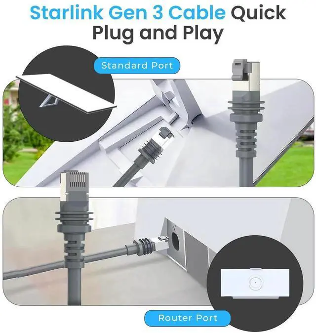 CompatibilityOur Starlink Gen 3 replacement cable is specially designed for the Starlink Standard Generation 3 satellite kit, ensuring optimal RJ45 connection and seamless compatibility with your Gen 3 router and dish for guaranteed performance.