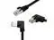 Bend up, down, left, and right Ethernet jumpers provide a solution for connecting in narrow spaces behind furniture or in network closets. Connect the 90-degree upward or downward sloping end to the RJ45 port of the device or the network LAN port; use an angled Ethernet cable instead of excessively bending the straight jumper.
