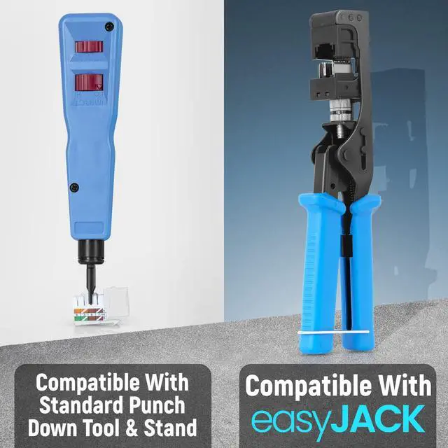 Wide Compatibility - The jacks can work in conjunction with a standard punch down tool and punch down stand for convenience. Its also compatible with our speed termination tool - easyJACK.