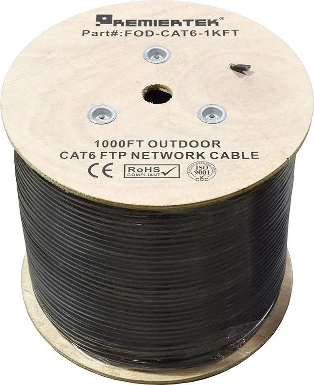 Premiertek Outdoor 1000' Cat6 23AWG CMX Cca 550MHz Shield FTP 4-Pairs Premium Network LAN Cable, Black