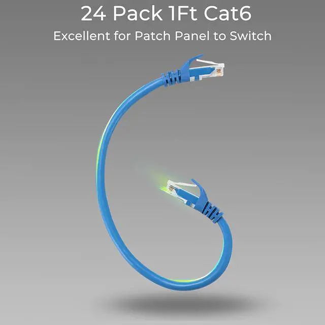 24-pack of CAT6 patch cables with short length is excellent solution for connecting patch panel to switch and other various devices in high performance. Available in various colors and length of cable patch cords.