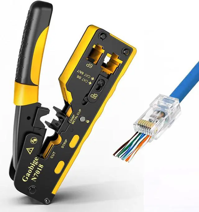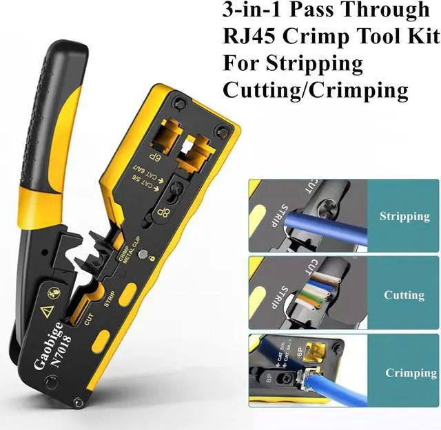 This Higher performance Pass through Ethernet crimping tool is easy to handle, allowing for an ergonomic grip and comfortable compressing action. The handle is made of special comfortable materials that are non-slip and easy to crimp. Steel with Black Oxide Material Ethernet crimper kit deliver the performance, precision needed to get the job done right.