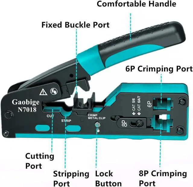 • This professional Pass Through rj45 crimping tool with unique design, it support wide kinds of connectors and cables: Ideal for Cat7/Cat6A/Cat6 Shielded Standard/Pass Through Connectors; Cat6A/Cat6/Cat5e/Cat5 Unshielded Pass Through/ Standard Connectors and Cat7/Cat6A/Cat6/Cat5e/Cat5 Shielded (Stp) and Unshielded (Utp) Cables. This crimping tool is also compatible with rj12 connectors.