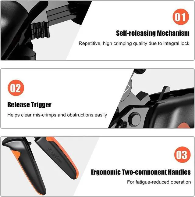 • [Ergonomic Handle Design]: Labor-saving ratchet device. The non-slip nylon handle with lever principle is designed for improving crimping effects.