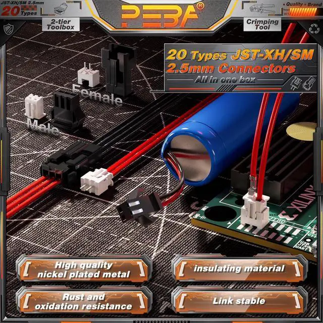 JST Connectors Kit: 20 Types of JST-XH&SM Connectors Crimp Pin and Housing Female/ Male Connector Plug, with Wire EDM Cutting Crimper Pliers and Tote Toolbox. It is the best choice for amateurs and professional craftsmen!