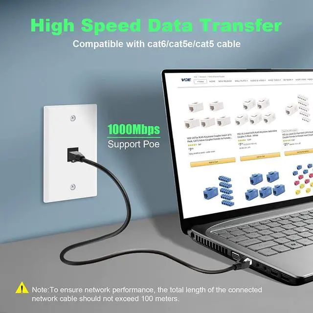 With gold-plated pure copper contacts and a flame-retardant ABS housing, the coupler ensures 1000 Mbps Ethernet gigabit speed without signal loss.