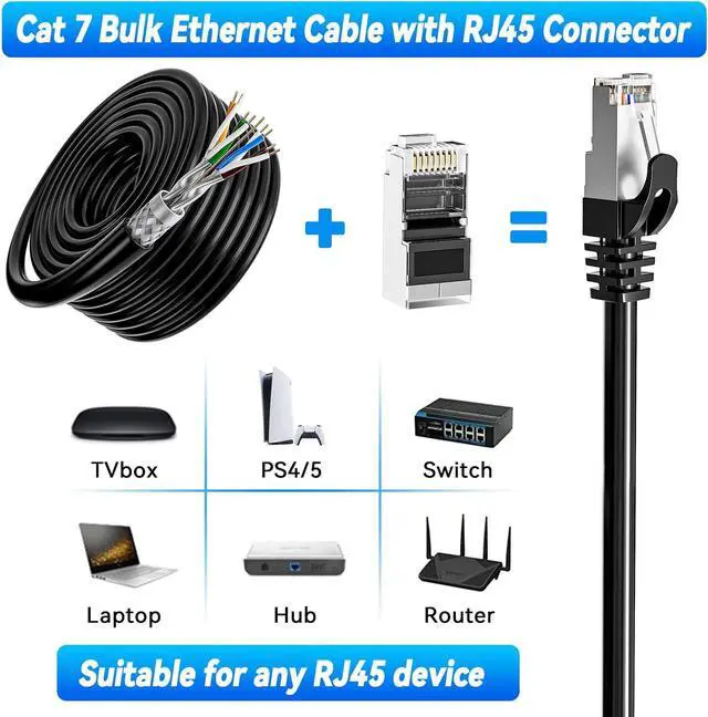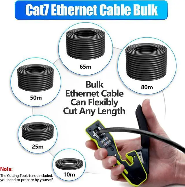 This cat 7 ethernet cable bulk are not limited by fixed length and can be cut into any length according to different scene requirements. You have the flexibility to cut the length you want without being limited to the length options offered by the market. In addition, we will provide you with some RJ45 connectors for free, so you don't have to purchase additional connectors yourself, which avoids the trouble of buying mismatched connectors and is very cost-effective.