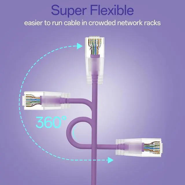 Cat6a Patch Cables 1ft (24 Pack) Slim, Cat6 Ethernet Patch Cable Pure Copper, Flexible Cat 6 Patch Cable 550MHZ 10G, Space-Saving Cat 6A Network Cables for Patch Panel, 0.5ft Purple