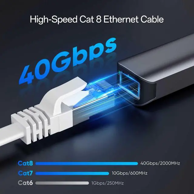 40G Data Transfer: Cat 8 ethernet cable transfer data at incredible speeds and supports up to 40Gbps and 2000MHz bandwidth, ideal for 8K streaming, VR gaming, and data centers. Cat8 ethernet cable 50 ft is future-proofing and faster data transfer compared to Cat5e and Cat6 and Cat7 cables.