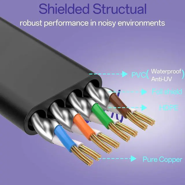 Shielded Structual: Ethernet cable cat 8 is made of 4 pairs of shielded foil twisted pair wires, providing EMI/RFI protection, minimizing crosstalk, and enhancing signal integrity. Cat 8 cable maintain robust performance in noisy environments, makeing them ideal for industrial settings, data centers, or offices with crowed networks.