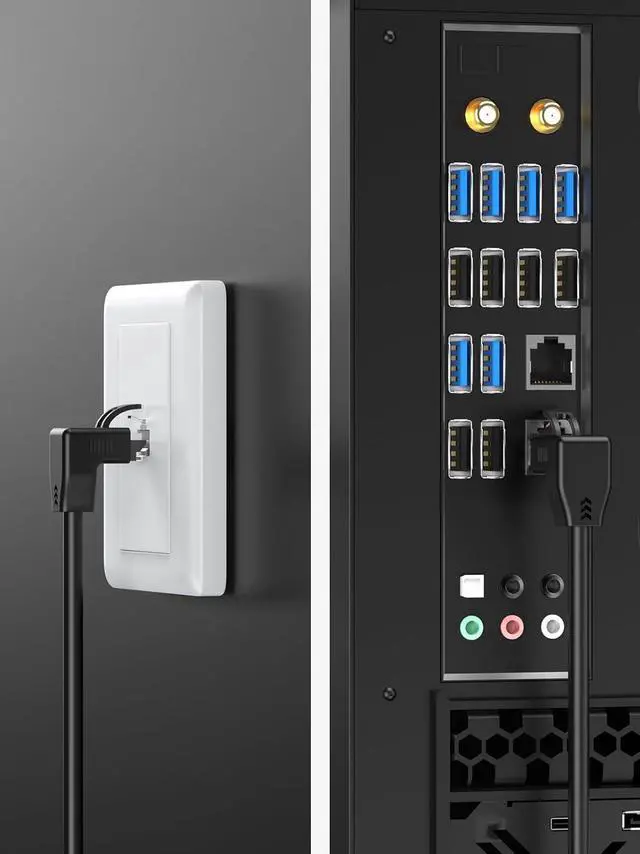 90 Degree Downward Angle : Can be better used in narrow spaces, tight fit your laptop or connect to network wall plate behind furniture, prevent the cable from bending, and increase the lifespan