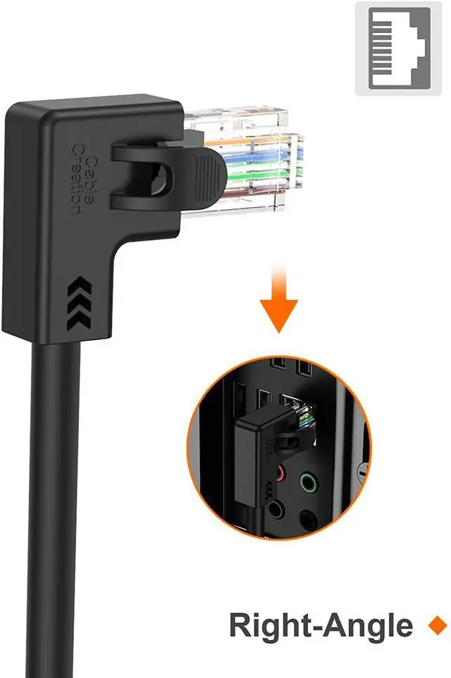 90 Degree Downward Angle : Can be better used in narrow spaces, tight fit your laptop or connect to network wall plate behind furniture, prevent the cable from bending, and increase the lifespan