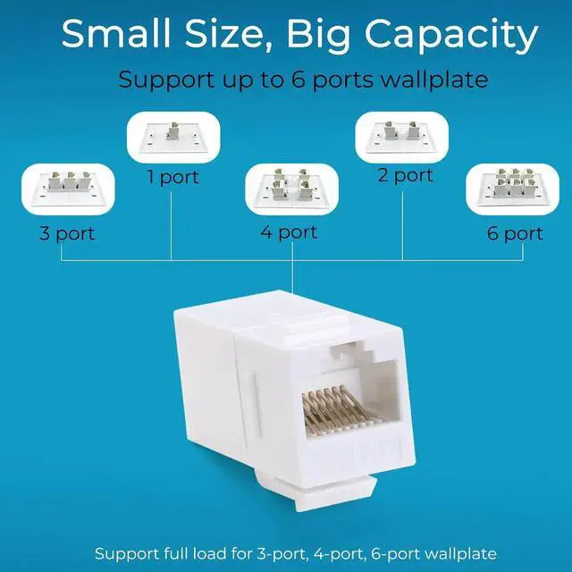 This CAT6 keystone inline coupler can support up to 6 ports wallplates, thanks to its slim compact size.