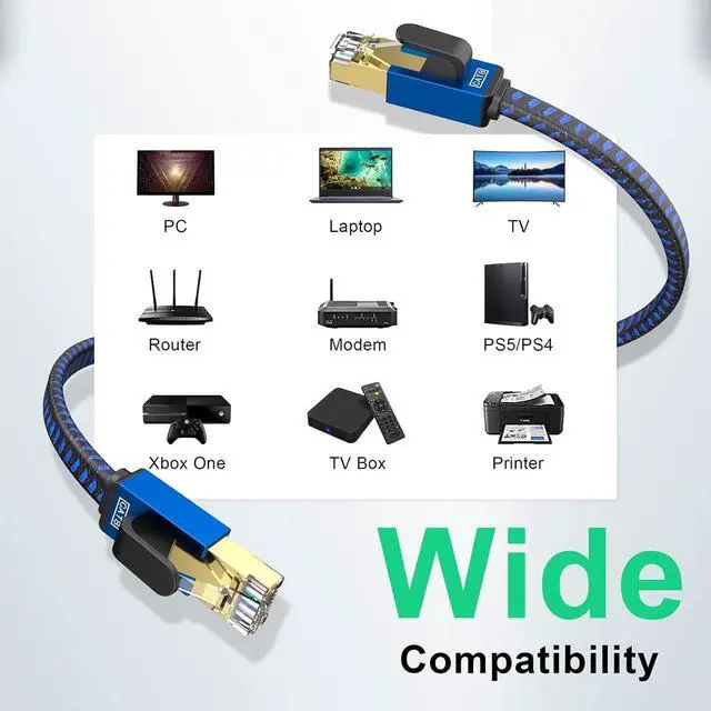 The Latest Flat Nylon Braided Design of Cat 8 Ethernet Cable