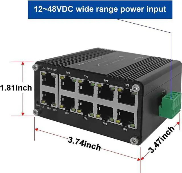 Wide Input: The Network Switch supports 12~48V DC wide range power input. With redundant power and polarity reverses protection function