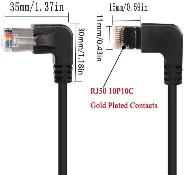 RJ50 10P10C Right Angle Male to 90 Degree Angle Male Cable,For code scanners, laser scanning equipment, Digiboard connections, data transmission equipment, PC accessories, test equipment, industrial control equipment. Can also be used with Medusa Box/Octoplus Box for cell phone repair. The RJ50 connector has the same physical dimensions as RJ45, follows the RJ specification and is backward compatible with RJ45, making it easy to use elsewhere.