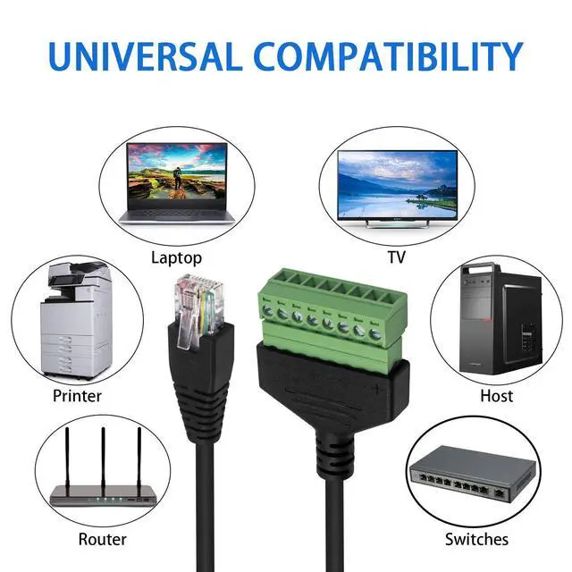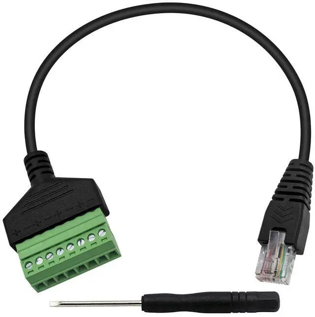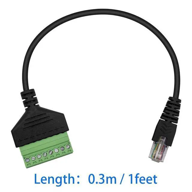 Rj45 breakout adapter works great for splitting pairs on UTP cable, and CCTV camera. Color Black and Green. Cable Length:30cm/ 12inch. Connector 1: rj45/ 8p8c male interface; Connector 2: AV 8pin screw terminal interface. we provide hassle-free 12-month warranty and friend customer service.