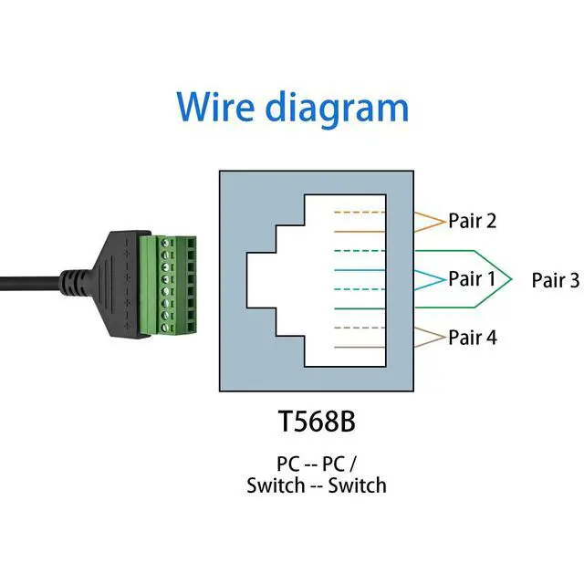 This RJ45 Male to 8 Pin Screw Terminal adaptor is wired in accordance with the EIA/TIA T568B wiring standard for structured cabling.It can connect external network cables and transmit network signals, is better shielding against electromagnetic interference.
