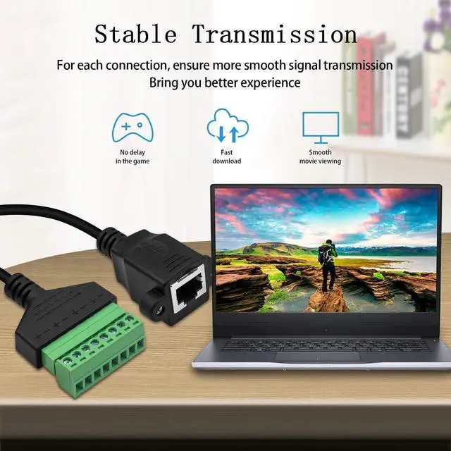 This RJ45 Male to 8 Pin Screw Terminal adaptor is wired in accordance with the EIA/TIA T568B wiring standard for structured cabling.It can connect external network cables and transmit network signals, is better shielding against electromagnetic interference.