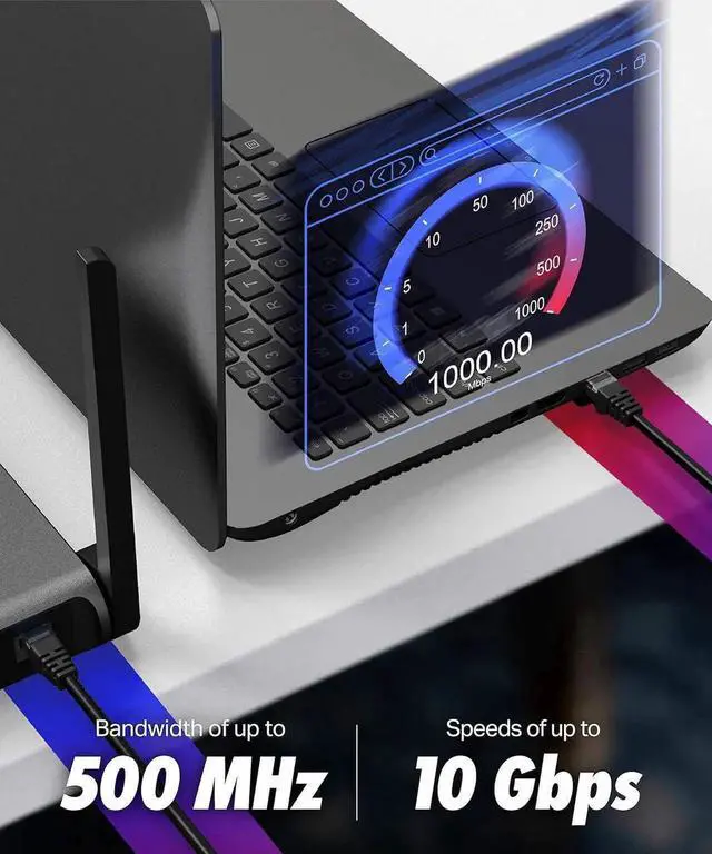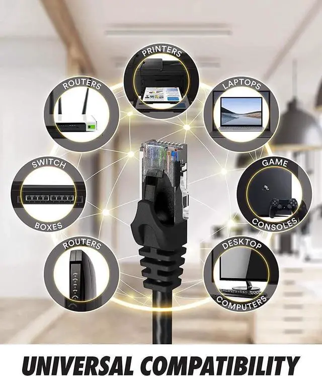 PERFORMANCE - High performance Cat6 ethernet patch cables are designed with extremely well-matched components for outstanding uniform impedance and very low return loss, providing lower crosstalk, and a higher signal-to-noise ratio. They support frequencies of up to 500 MHz and are suitable for high-speed 10GBASE-T internet connection for LAN network applications such as PCs, servers, printers, routers, switch boxes, and more, while remaining fully backward compatible with your existing network.