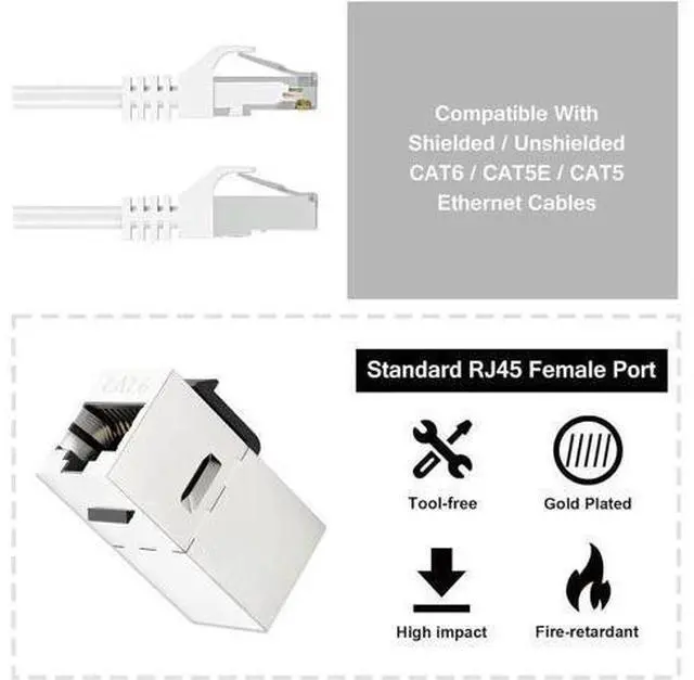 The Cat6 RJ45 coupler allows you to connect two Cat 6 ethernet cables effortlessly. No more worries about short cables