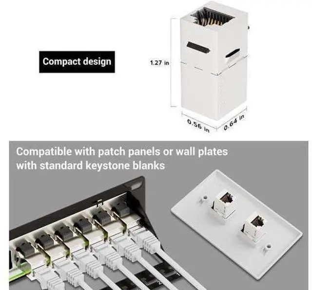 The Cat6 shielded keystone jacks is compatible with various RJ45 panels and angled patch panels. It can also replace Cat 5e wall jacks and Cat5 keystone couplers